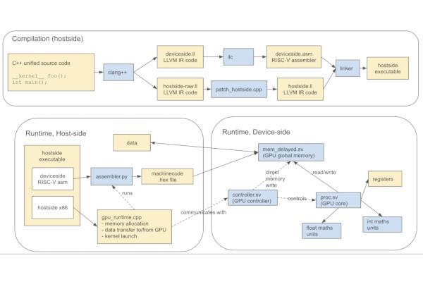 The core design goal for the project is a core capable of running workloads written for the Heterogeneous-compute Interface for Portability (HIP), and hopefully boasting compatibility with the PyTorch deep-learning framework. Support for additional programming interfaces, including SYCL and CUDA, aren't a focus - but, Hugh says, he's open to their implementation.